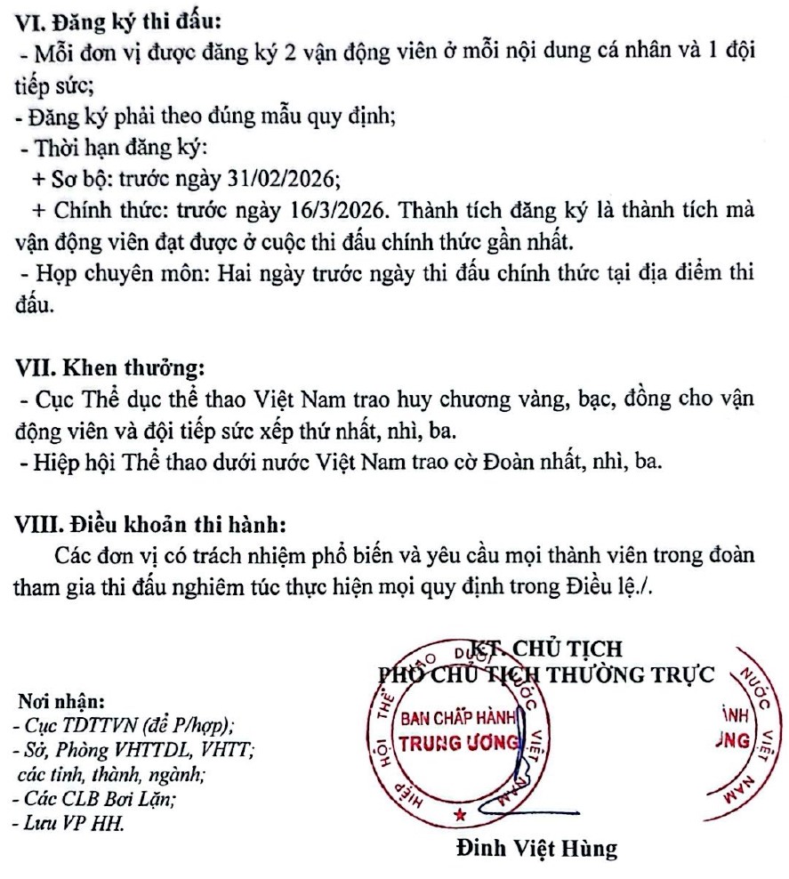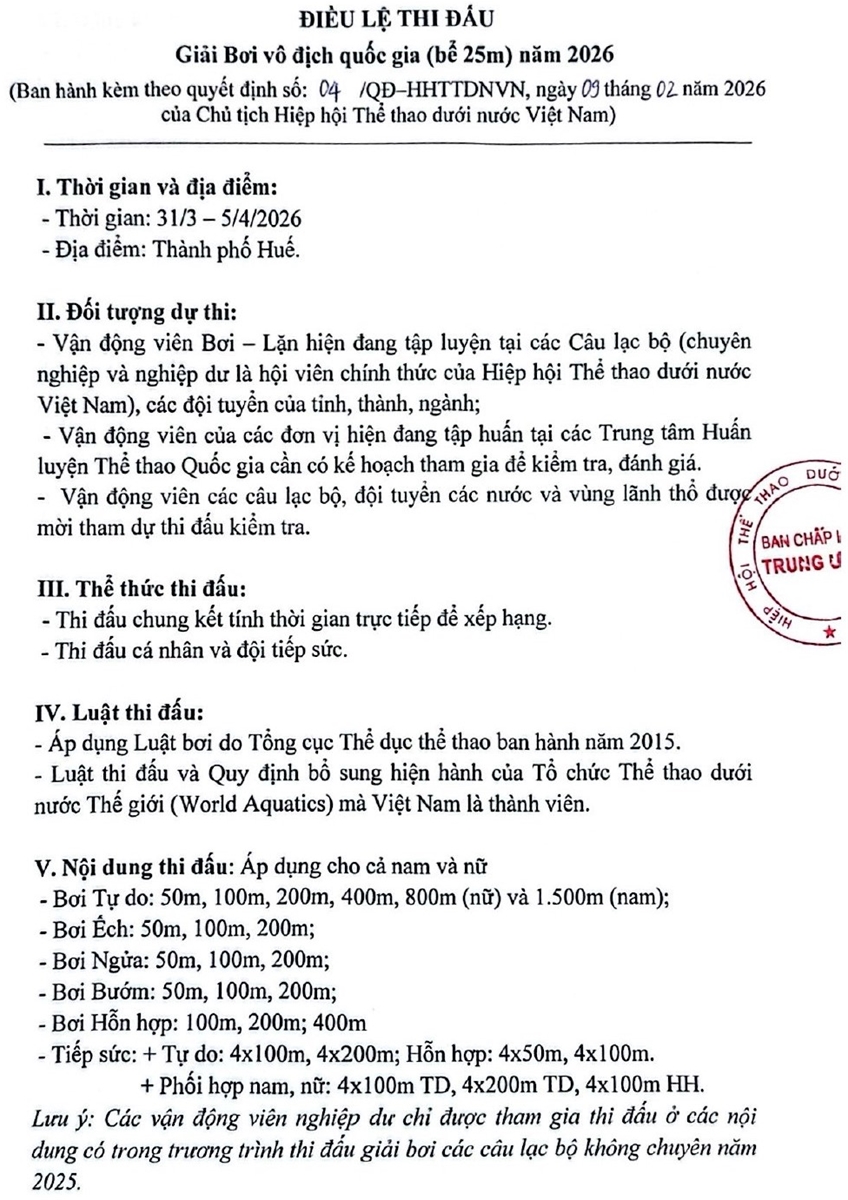 Điều lệ giải Bơi vô địch quốc gia 2025